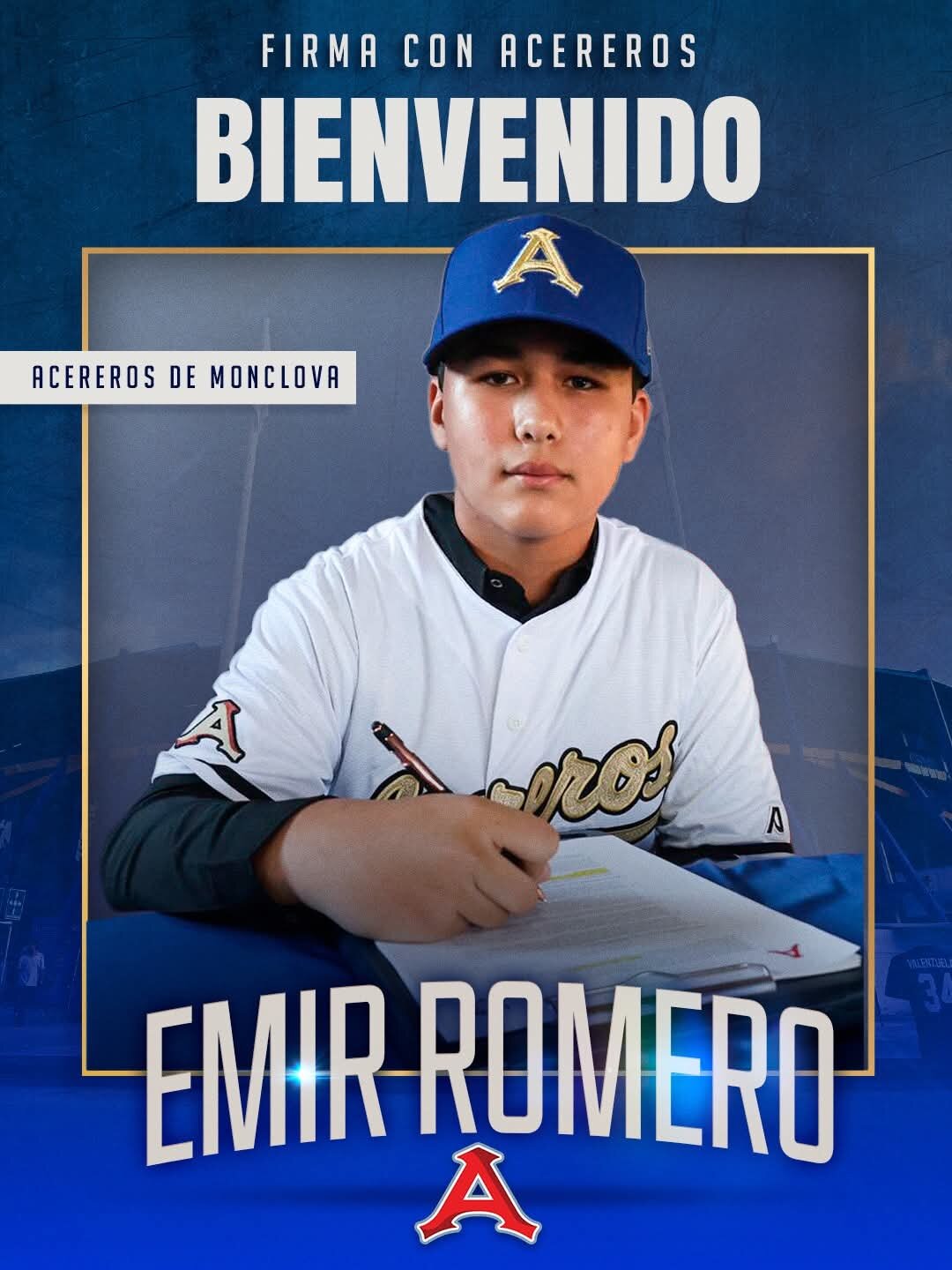 El club Acereros de Monclova fortalece su cantera con la firma del prospecto Manuel Emir Romero Franco, un tercera base de 14 años originario de Culiacán, Sinaloa, quien destaca por su potencia al bate y se integra formalmente al programa de desarrollo de la organización.