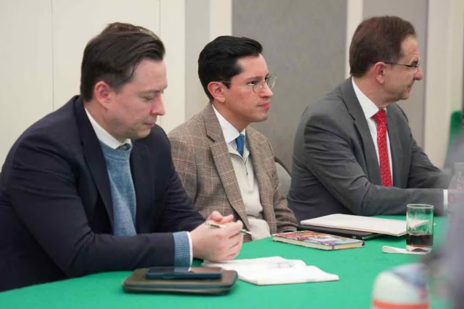 Roberto Velasco sostuvo un encuentro con el embajador de México en Estados Unidos, Esteban Moctezuma, para ultimar los detalles del encuentro con autoridades del Departamento de Estado, la Casa Blanca y miembros del Congreso estadounidense. Velasco enfatizó que la colaboración se basará en el respeto a la soberanía, cooperación efectiva y resultados concretos sin subordinación.