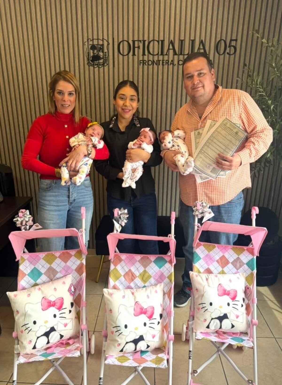 Después de conmover a toda la comunidad con su nacimiento en diciembre, las trillizas Blanca Alicia, Flor Estela y María Victoria fueron registradas oficialmente hasta enero en la Oficialía 05 del Registro Civil de Ciudad Frontera, un acto que dio cierre legal a una historia que desde el primer día estuvo marcada por la esperanza, la fe y el amor familiar.