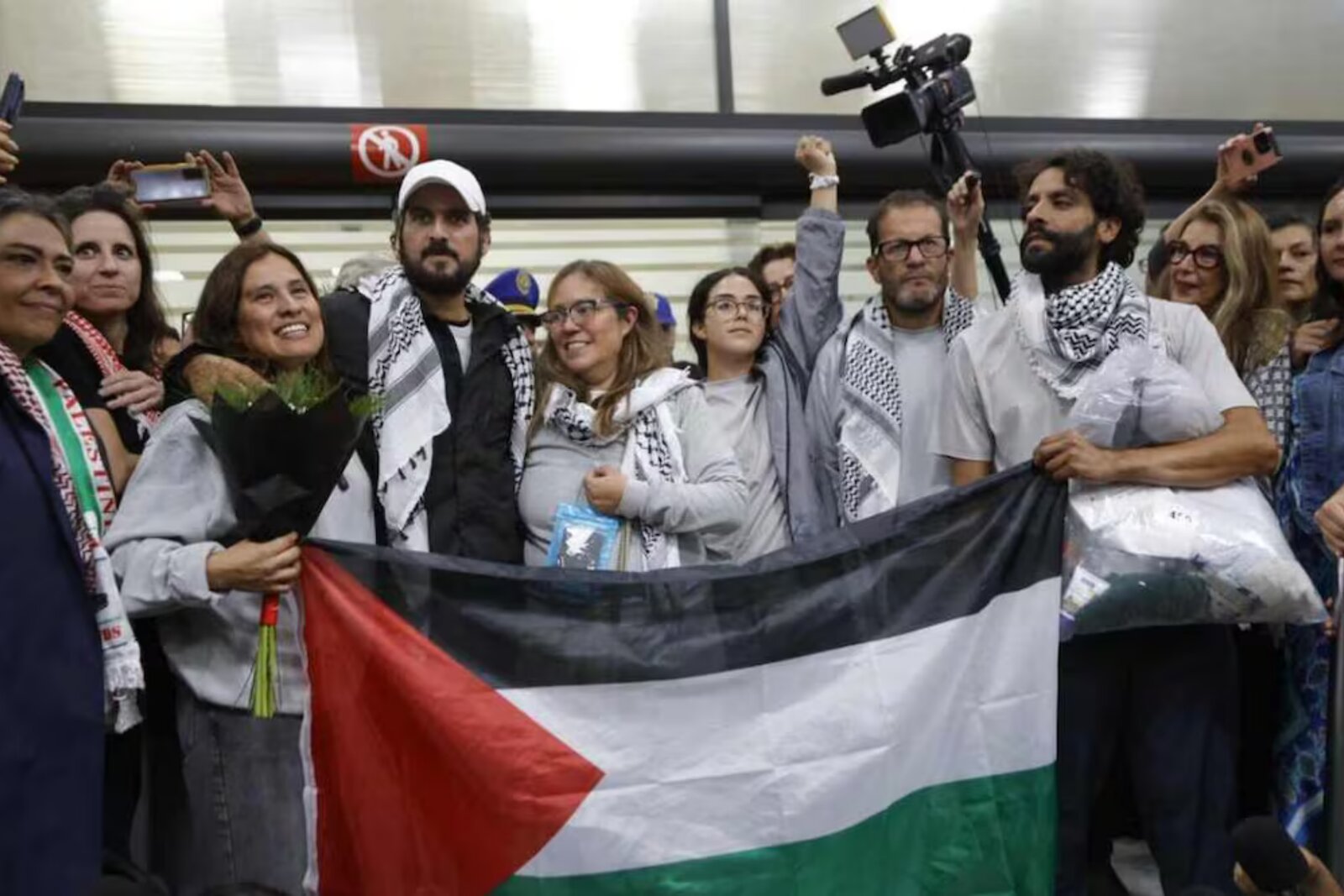 Este miércoles 8 de octubre, los mexicanos Sol González Eguía, Ernesto Ledesma Arronte, Arlín Medrano Guzmán, Carlos Pérez Osorio, Diego Vázquez Galindo y Laura Alejandra Veléz Ruiz Gaitán llegaron a la Terminal 1 del AICM, tras ser interceptados por Israel mientras participaban en la Global Sumud Flotilla, denuncia que incluyó secuestró, tortura y agresiones físicas.