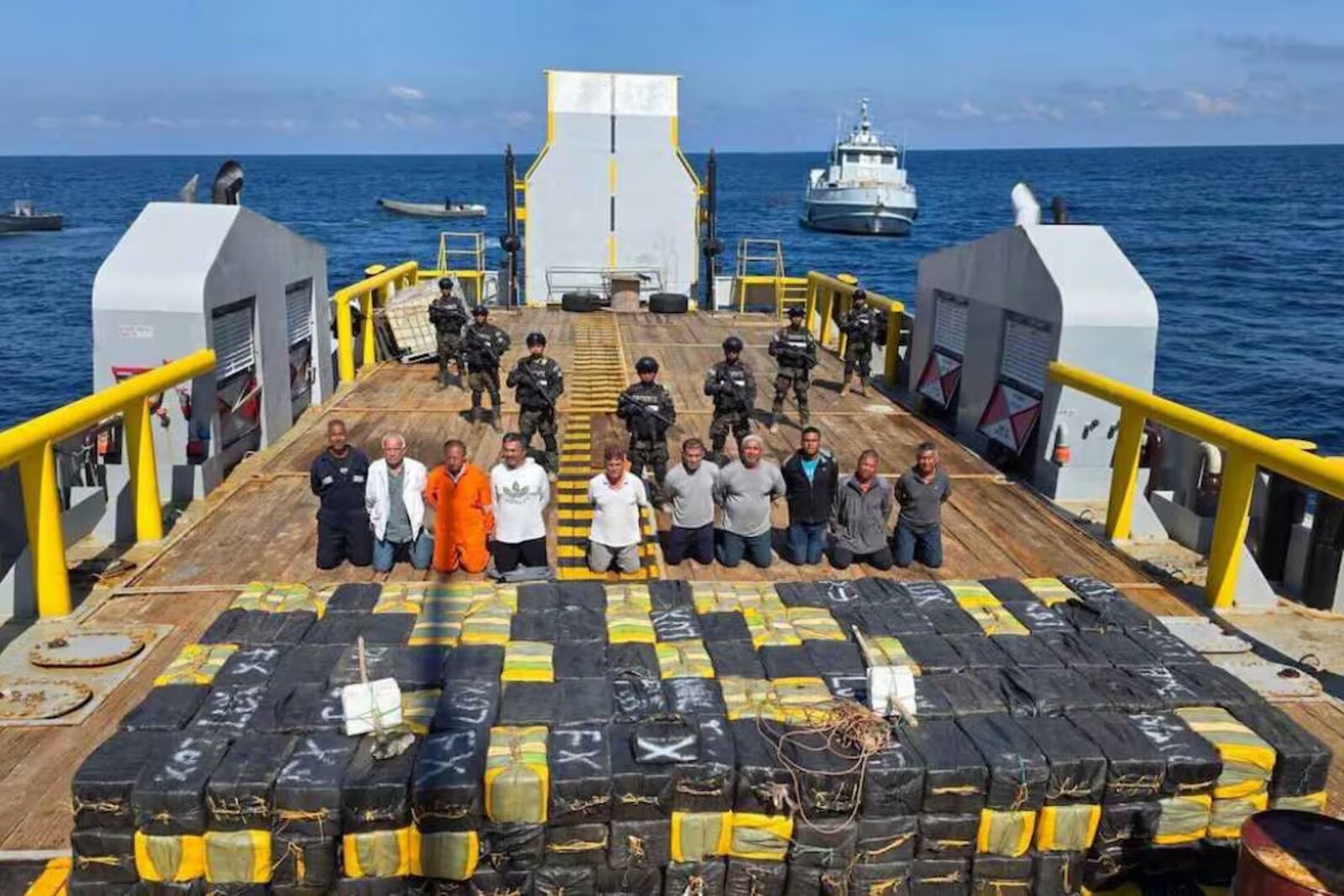 En el buque viajaban 10 presuntos narcotraficantes: cuatro colombianos, tres nicaragüenses, dos panameños y un ecuatoriano, quienes fueron detenidos por las autoridades salvadoreñas.
