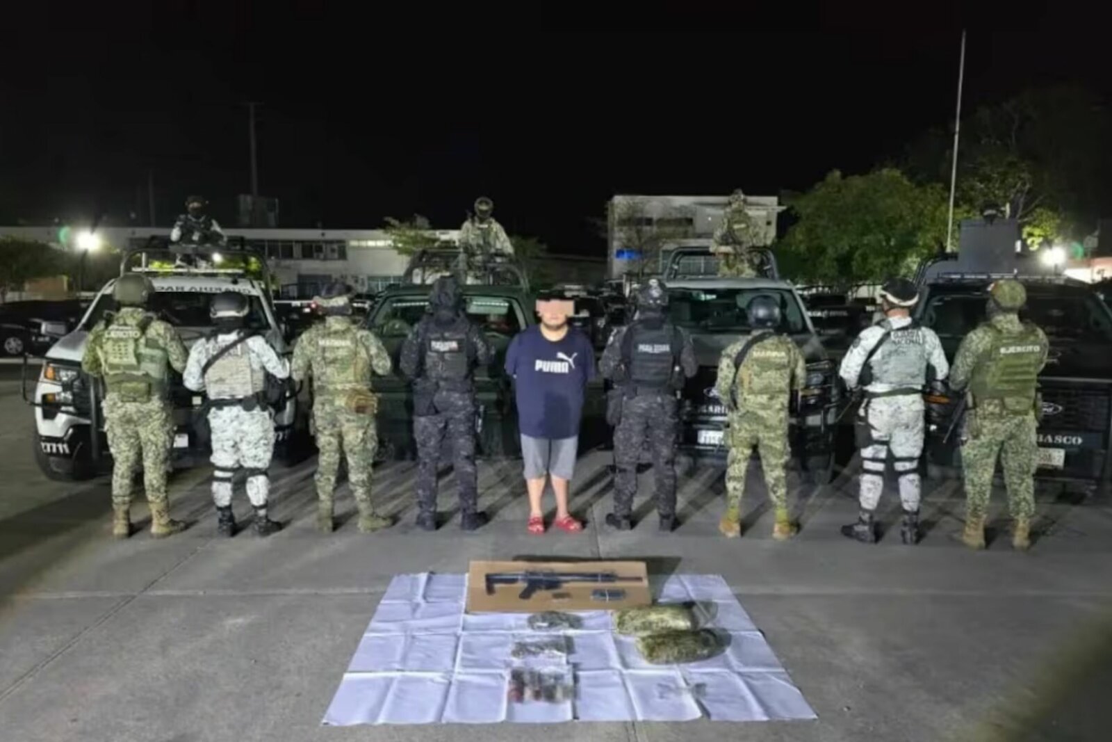 La persona asegurada fue identificada como Luis Antonio “N”, alias “El Balú”, de 34 años, quien fue capturado por integrantes del grupo de reacción táctica “Tiburones” en un retén de seguridad instalado sobre la carretera Teapa–Villahermosa, a la altura de la colonia Plutarco Elías Calles, en el municipio de Centro.