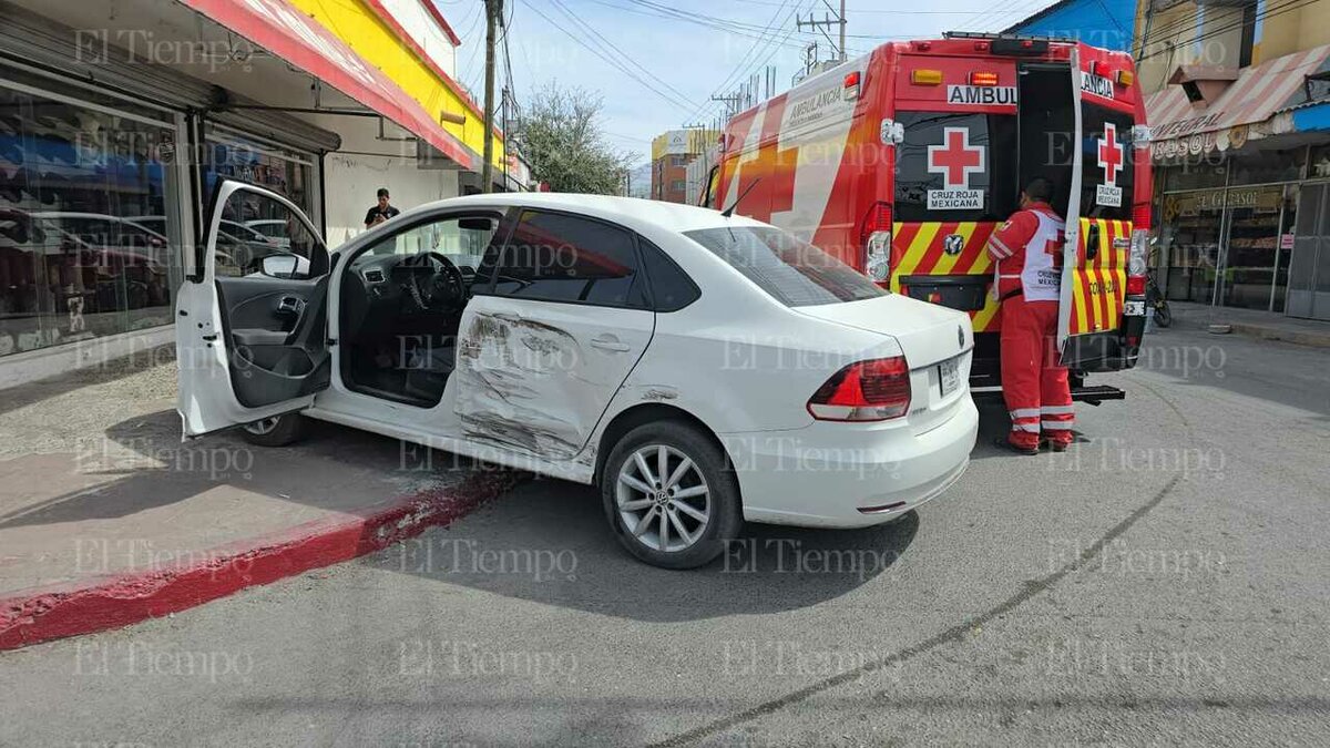 La falta de precaución provocó que impactara en el costado izquierdo a un Volkswagen Vento blanco con placas para persona con discapacidad, conducido por Nancy Álvarez, habitante del Fraccionamiento Carranza.