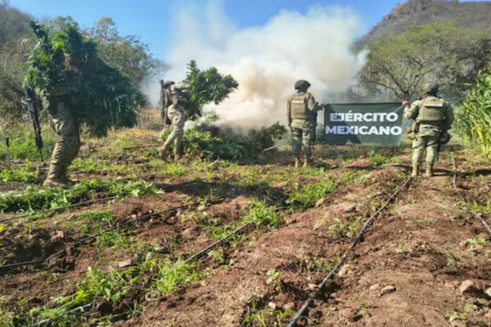 En el operativo participaron la Guardia Nacional y el Ejército Mexicano, en acciones enfocadas en la localización y destrucción de plantíos de marihuana en la región.
